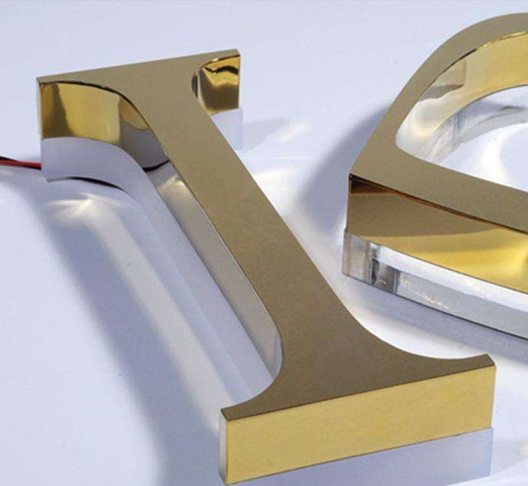 首先,我们要把金属板材的每一面切割成立体的双面字,在板材的角落表面开槽进行字体笔划,便于更好的弯曲。各面板的板材采用氩弧焊焊接成形。然后,焊缝顺利抛光。双面字符金属表面可以处理各种涂料颜色,以满足您的需要。对于个人需要,还可以选择不锈钢质地强的。您也可以选择贵金属钛和黄金材料。你也可以选择带有复古风格的青铜金属。